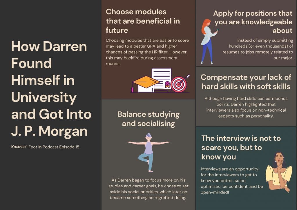 With these possible questions that surface, we spoke to Darren, a Structured FX, Rates & Credit Trading MO at J.P Morgan, who shared his story of self-discovery, some interview, and university tips!