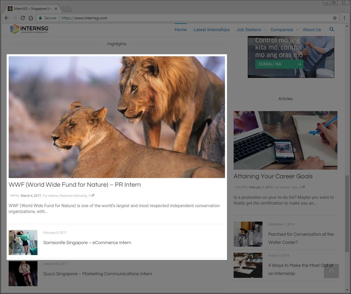 - Accompanied by homepage feature widget with image leading to article (if provided) or job listing
